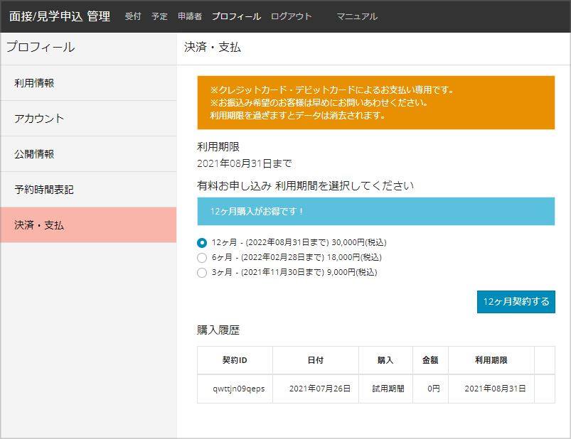 - 自動継続ではありませんので、期間満了時に継続される場合は、再度決済していただきます。